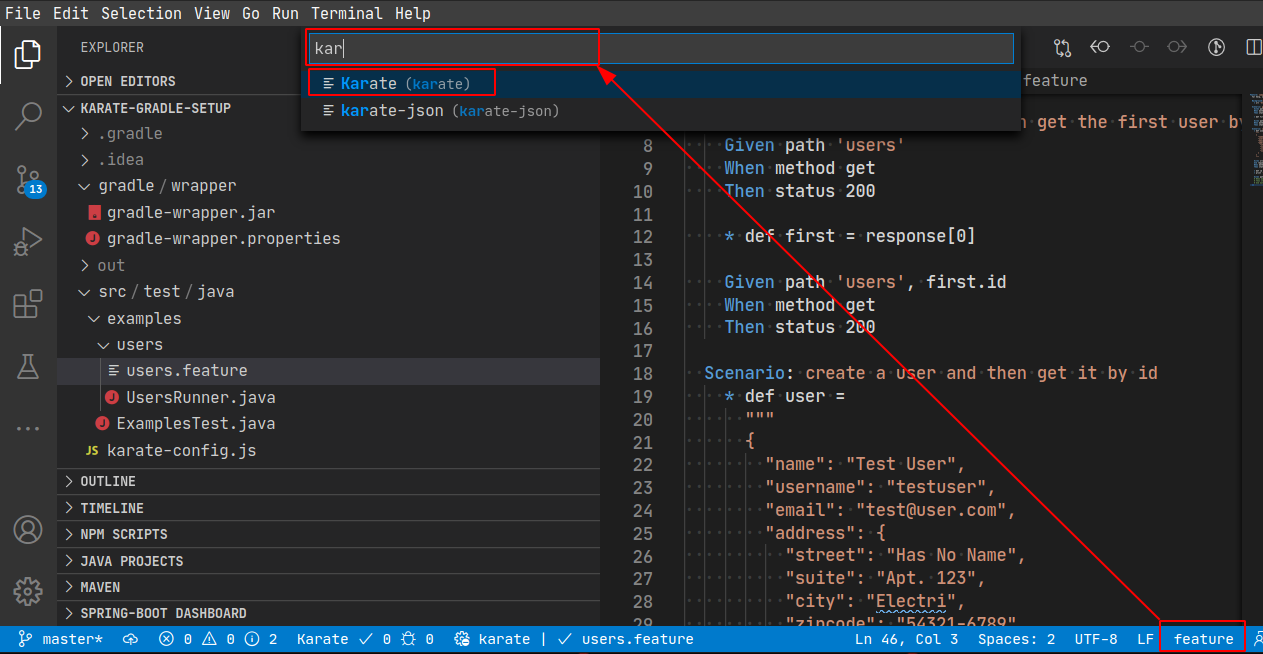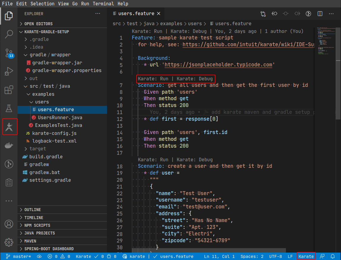 But, if you choose VS Code as your IDE, you can benefit from the dedicated Karate VS Code plugin.