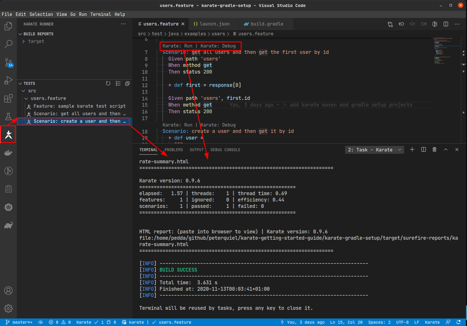 lense or you use the test overview in the Karate sidebar to execute a test.