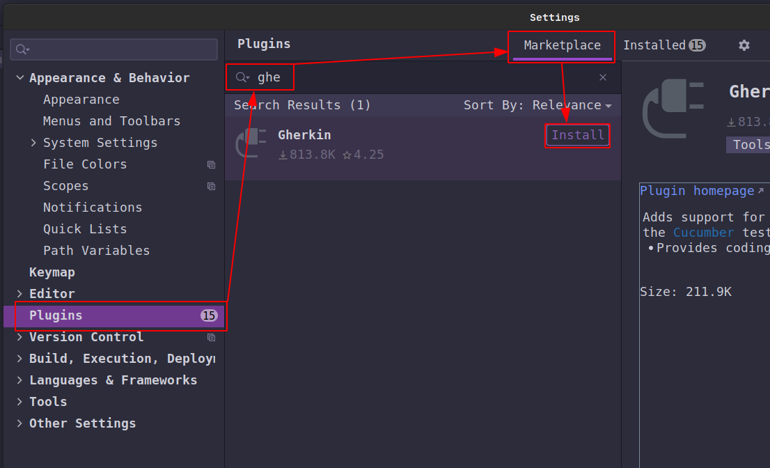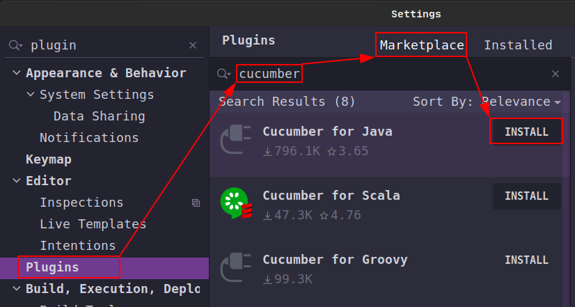 It brings this feature to you via the Cucumber for Java a plugin that you need to install the same way:
