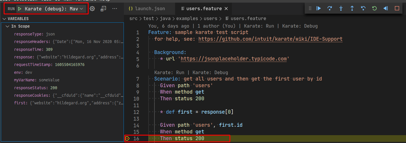 Debugging Karate Scenarios with VS Code