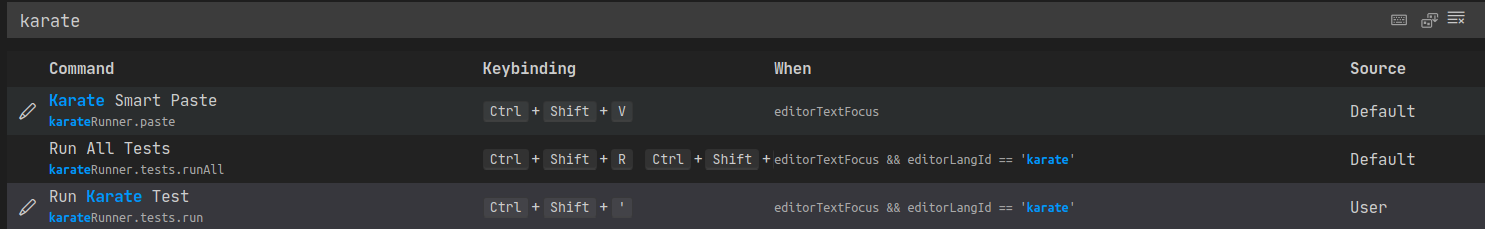 As you can see, I already reconfigured the Run Karate Test key binding.